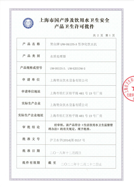 東莞市賀一飲水設備有限公司為賀眾牌飲水設備東莞授權總代理商,證號24019,負責上海賀眾飲水設備所產制的賀眾牌相關產品的銷售以及售后服務。